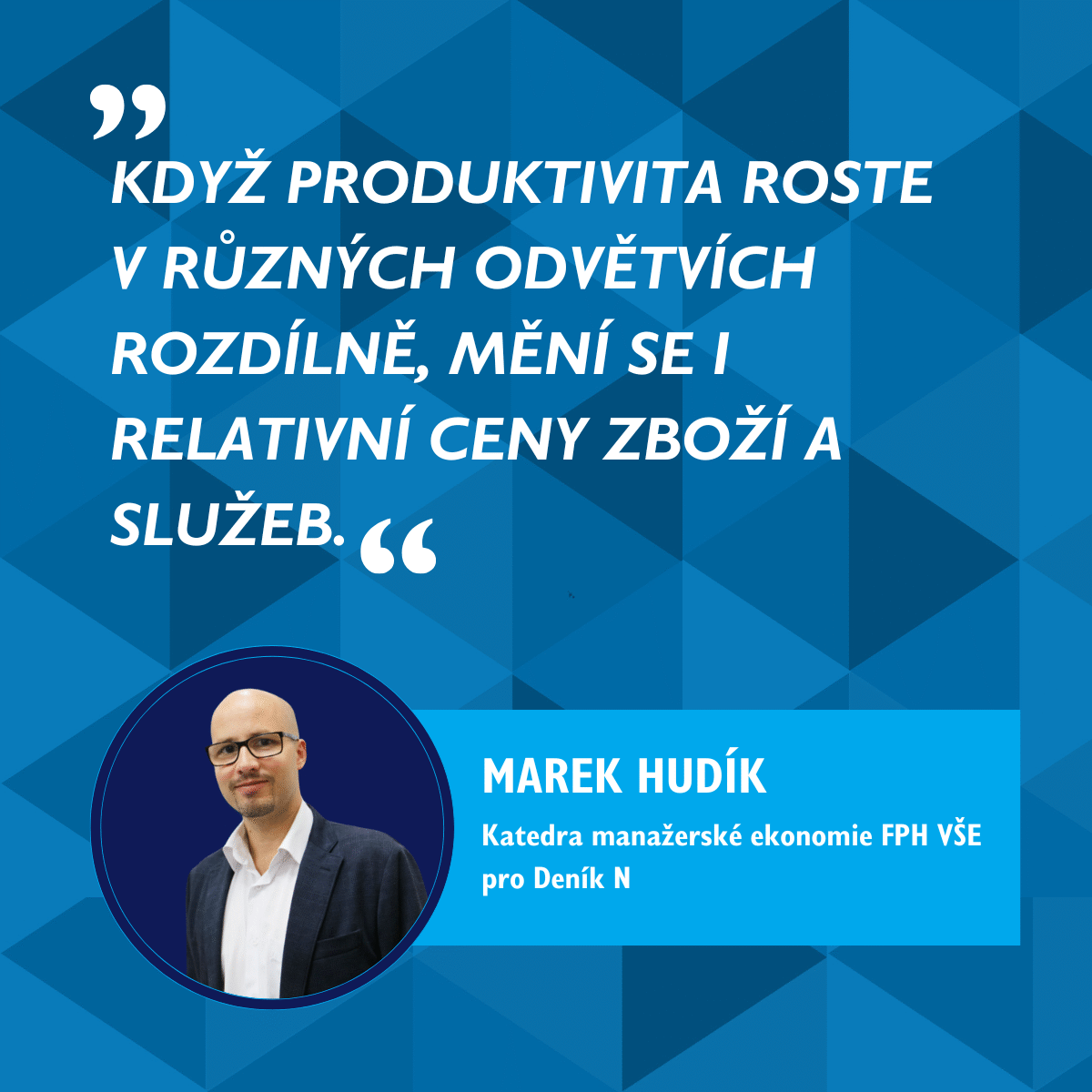 „Když produktivita roste v různých odvětvích rozdílně, mění se i relativní ceny zboží a služeb. To, co bývalo výsadou bohatých, se stává standardem, a naopak to, co bylo běžně dostupné, postupně zdražuje. Ekonomové tento jev nazývají Baumolův efekt. A právě ten vysvětluje, proč jídlo v restauracích stojí čím dál více,“ píše ve svém komentáři v Deníku N Marek Hudík z Katedry manažerské ekonomie FPH VŠE.